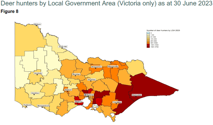 The geographical spread of deer hunters tends to be from the state's centre to the Far East.