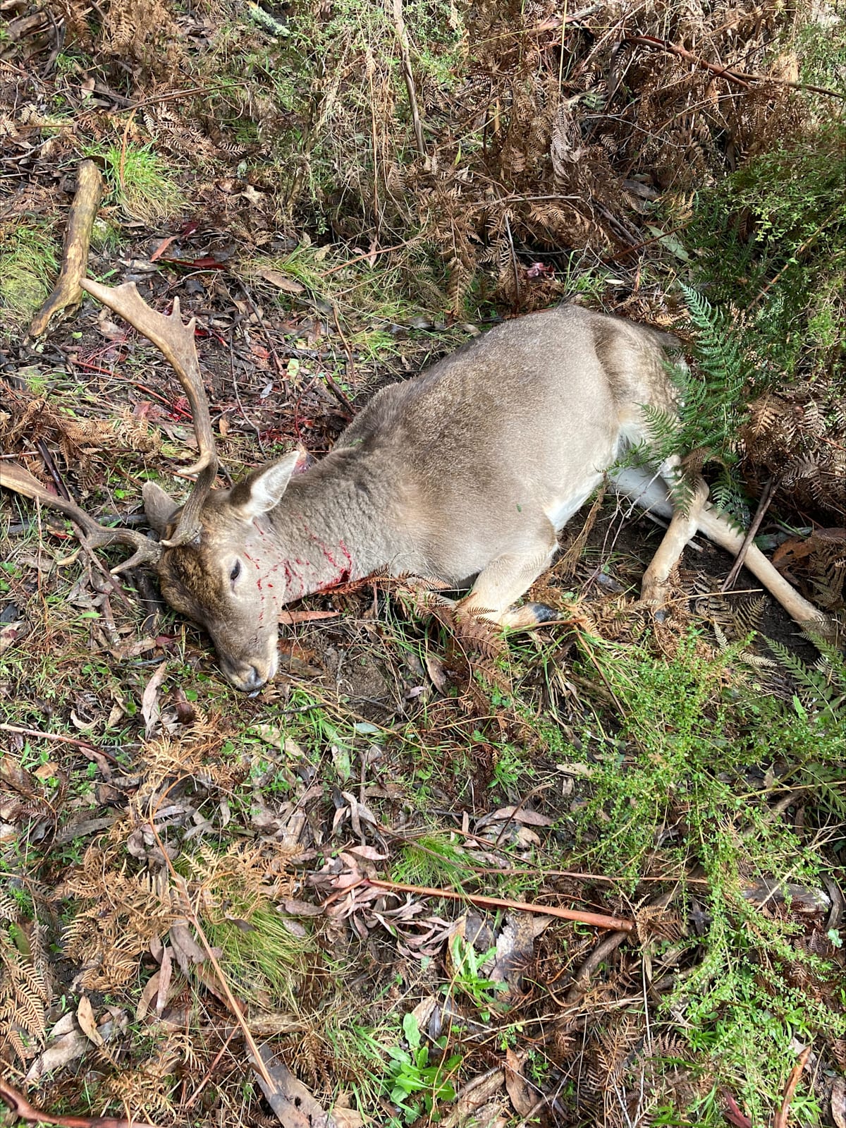 On Saturday evening I headed out for a stalk on my own (screen time won for Zeke), deciding to check the fringe country on the block we’d driven back through. This area was much more open with lots of little gully systems. There was lots of sign to be found with fresh prints and scat along the many paths leading both towards the pasture and across through the gullies. Approaching the lip of one of the gullies the wind swirled around and a small herd of fallow scampered up the opposite slope. A doe stopped close to the top giving me a 70m off hand shot. She bolted at the shot and I spent the next half an hour following her up. I found the spot she bolted from and running prints for the next 30m but there was not a drop of blood to be found.