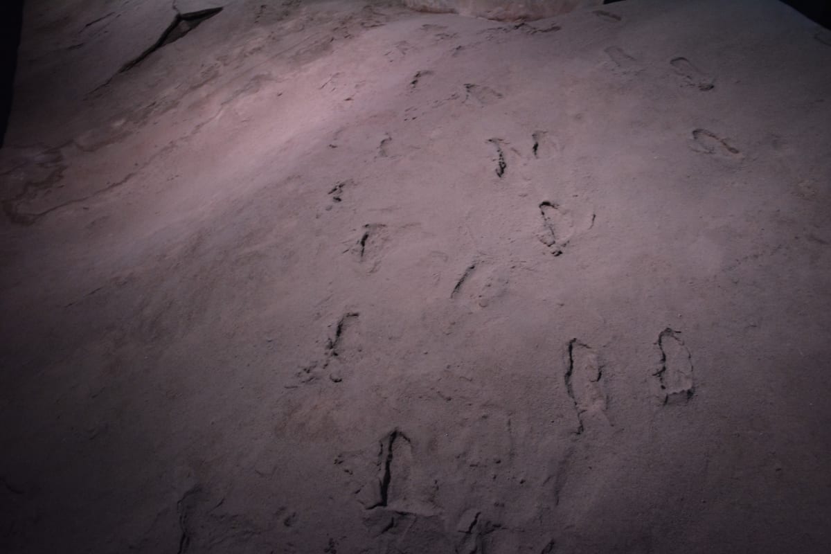 Footprints of three young kids who went exploring a cave in the Pyrenees, just as all kids anywhere are likely do. The only difference is remarkably these prints are intact and have been dated as 16,000 years old? Who knows what they were thinking. But, with the cave possibly inhabited by Giant Cave Bears and big cats, it would have been quite an adventure!