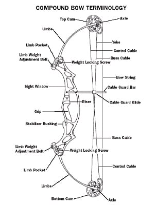 Limbs – flexible parts of the bow that store energy when the string is pulled back.