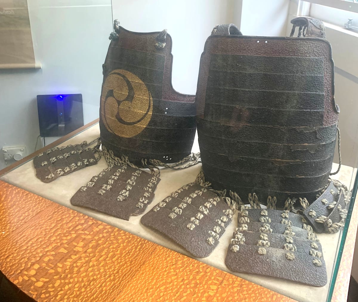 An example of a hon eyozani do or body breast plate made of lacquered deer leather. It is of the type that were made when firearms were introduced into Japan in the 16th century.